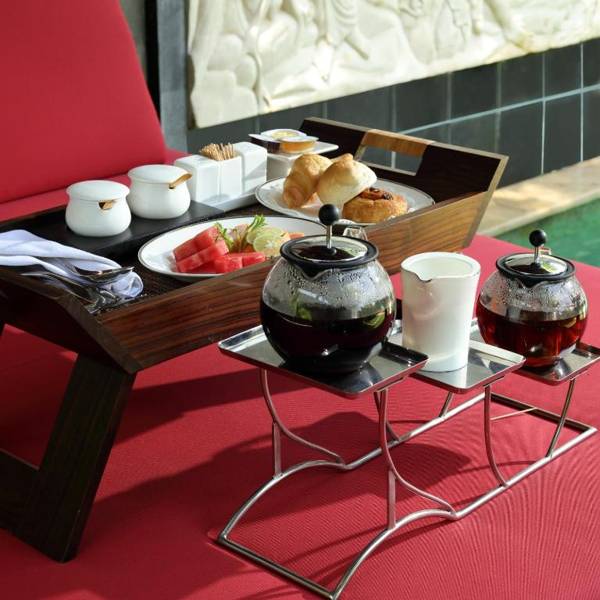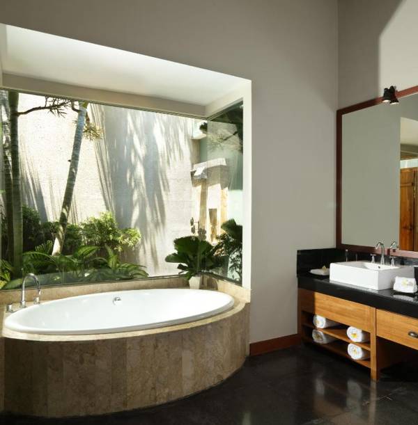 The luxurious Shanti Residence in Bali's Nusa Dua offers guests a wine cellar and free Wi-Fi. The spacious villas have indoor and outdoor bathrooms, with in-room spa treatments available. Guests can relax in their living and dining rooms, equipped with DVD players and flat-screen TVs. The resort also has a fitness center, tour desk, and currency exchange services. Delicious food options include local Indonesian favorites and international cuisine, with in-room dining available. A free airport transfer and car with driver are provided, and the resort is located 30 minutes from Denpasar and 45 minutes from Ubud by car.
