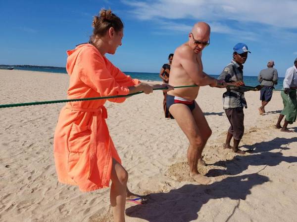 Trincomalee Beach Resort & Spa is a 4-star resort located in Trincomalee, just steps away from Uppuveli beach. The resort offers a restaurant, free private parking, an outdoor pool, and a bar. Guests can enjoy free WiFi, a garden, and a terrace. All rooms are equipped with amenities such as air conditioning, a seating area, flat-screen TV, and a private bathroom. Some rooms also have a balcony with pool views. The resort offers a continental or buffet breakfast and has a playground for guests. Other services include bike and car rental, as well as an ironing service and business facilities. Popular landmarks like Fort Frederick and Koneswaram Temple are located nearby.
