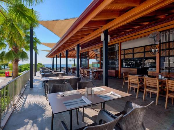 TUI BLUE Sensatori Barut Sorgun - Ultra All Inclusive is a luxurious hotel located in Side, offering a range of amenities such as a restaurant, private parking, outdoor pool, and fitness center. The hotel also has a bar, garden, and private beach area. Guests can enjoy a buffet breakfast and have access to facilities like an indoor pool, hammam, and evening entertainment. The rooms are equipped with air conditioning, a flat-screen TV, and a balcony with sea views. Other activities available at the hotel include ping pong, darts, and tennis, and guests can also rent a car. The hotel is within walking distance to Titreyengol Beach and a short drive from Side Antique City. An airport shuttle service is available for an additional fee.