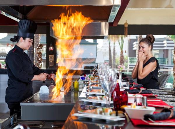 TUI Magic Life Masmavi is a resort located in Belek, offering a spa center, private beach, and outdoor pool. Guests can enjoy a meal at the restaurant and free WiFi throughout the property. The hotel also has a playground and kid's club, as well as live performances and evening shows organized by the entertainment team. For relaxation, guests can visit the sauna, hammam, or spa center, and there is also a fitness center and indoor pool. The resort offers various activities such as tennis, table tennis, and windsurfing, and car hire is available. The nearest airport is Antalya Airport, 17 mi away.