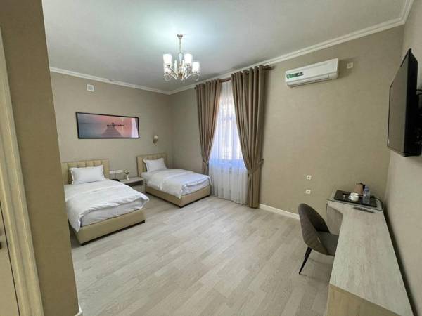 Turon Lux Hotel in Samarkand offers a variety of amenities such as a restaurant, free bikes, a bar, and a shared lounge. The 4-star hotel also has a garden, barbecue facilities, and a 24-hour front desk with a shared kitchen and currency exchange. All rooms are equipped with air conditioning, a seating area, flat-screen TV, safety deposit box, and a private bathroom with bathrobes and slippers. Some rooms also have a kitchenette with a microwave, fridge, and minibar. A buffet breakfast is available for guests and the hotel also has a terrace.