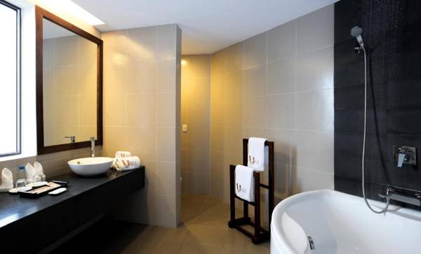 Unique Mui Ne Resort and Spa is a luxurious beachfront property with an outdoor pool and rooftop restaurant. Guests can enjoy spacious air-conditioned rooms with private balconies, free Wi-Fi, and buffet breakfast. The modern rooms offer stunning sea views and are equipped with all necessary amenities. The resort also features a spa, hair salon, hot tub, and water sports for leisure activities. The rooftop restaurant serves international cuisine, while the Poolside Restaurant Bar & Lounge offers pizzas and cocktails. The resort is a short drive from Phan Thiet city center and offers airport transfers and free parking.