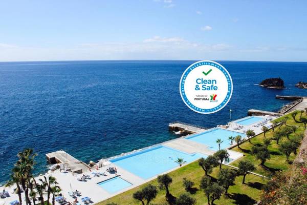 The Vidamar Resorts Madeira is a luxurious 5-star hotel located in central Funchal, just a short walk from the coast. It boasts 3 infinity pools for adults and 1 for children, all with stunning views of the Atlantic. The rooms offer either sea or garden views and come equipped with amenities such as air conditioning, cable TV, and a mini refrigerator. The room rate includes a half board plan, with a variety of on-site restaurants serving local and international cuisine. The hotel also features a kids' play area and a spa with various treatments and facilities. Guests can also enjoy activities like water sports and squash, or simply relax on the hotel's sea platform. The hotel is conveniently located 11 miles from Madeira Santa Catarina Airport and offers parking for an additional fee.