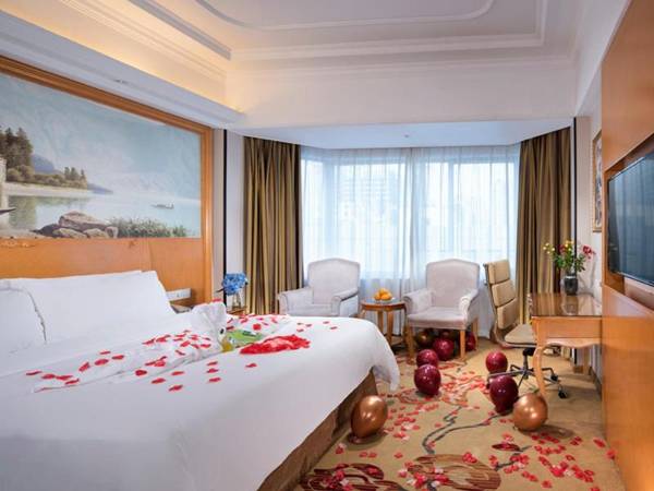 Vienna International Hotel Zhuhai Golden Phenix is a hotel in Zhuhai that offers free WiFi and private parking. It is located near popular attractions such as Sun Yat Sen Park and Zhuhai Fisher Girl Statue. The hotel is about a 1-hour drive from Zhuhai International Airport. Each room is air-conditioned and equipped with a flat-screen TV and electric kettle. The private bathrooms come with slippers, toiletries, and a hairdryer, and bottled water is provided. The hotel has a 24-hour front desk and offers services such as luggage storage and a safety deposit box. There is also an on-site restaurant for guests to enjoy.