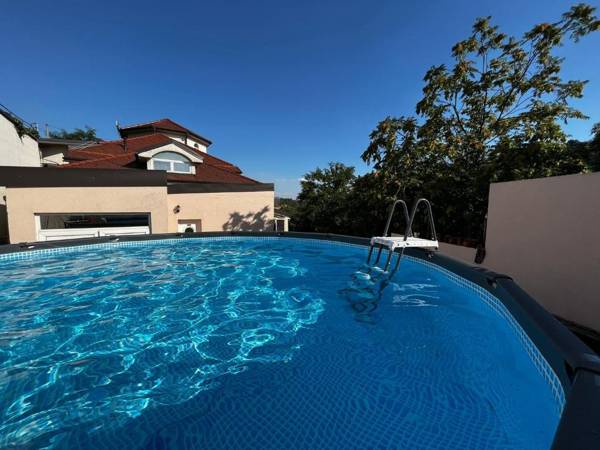 Vila Mona Parking and Pool in Belgrade's Vozdovac district offers a restaurant, bar, shared lounge, and garden. The villa has 7 bedrooms, 7 bathrooms, and a fully equipped kitchen, as well as free parking, WiFi, and a 24-hour front desk. Guests can enjoy a continental breakfast and use the grill provided. The property is located 3.9 miles from St. Sava Temple, 4.5 miles from Belgrade Fair, and 5 miles from Ada Ciganlija. The nearest airport is Belgrade Nikola Tesla Airport, 15 miles away.