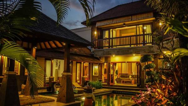 Villa Purnama is a tropical retreat with a private pool and lush garden. It is located near popular beaches and offers sightseeing arrangements. The villa has free Wi-Fi and is a short drive from Canggu Club and Plaza. The airport is 30 minutes away and an airport shuttle is available. Guests can relax by the pool or in the gazebo, and the villa has a comfortable living area and well-appointed bedrooms with semi open bathrooms. Car and motorbike rentals are available, and the staff can assist with room service and laundry. The fully-equipped kitchen allows guests to prepare their own meals.