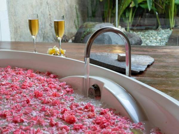 Villa Sin Sin is a private complex of three 2-bedroom villas in Kerobokan, built in 1999 by artist and entrepreneur Ms. Sin Sin Man and Italian architect Mr. Gianni Francione. Surrounded by the peaceful countryside and mountains of Bali, the villas showcase Sin Sin Man's creative touch with a mix of contemporary and antique art. Each villa is fully air-conditioned and features a kitchenette, open-concept living room, and indoor/outdoor bathrooms overlooking the tropical gardens. Guests can also enjoy amenities such as a flat-screen TV, DVD player, and iPod dock. The villas are a 20-minute drive from Kuta and 30 minutes from the airport, with the option for car rentals and airport transfers at no additional cost.