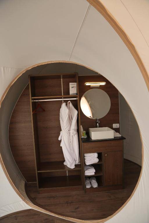 Wadi Rum Bubble Luxotel is a luxury tent accommodation situated in Wadi Rum, offering stunning mountain views. Guests can enjoy a restaurant and 24-hour front desk, as well as free WiFi. Some units feature a private bathroom with a bidet, bathrobes, slippers, and a hairdryer. The tent also offers a buffet or à la carte breakfast and a grill on the premises. Beʼer Ora is 30 miles away, and the nearest airport is King Hussein International Airport, located 38 miles from Wadi Rum Bubble Luxotel.