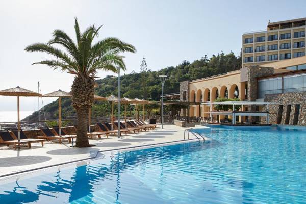 Wyndham Grand Crete Mirabello Bay is a luxurious 5-star hotel situated on a peaceful beach in Agios Nikolaos. The hotel boasts private pools, a full-service spa, and 9 restaurants, as well as free WiFi throughout the property. Guests can start their day with a delicious breakfast on the sunny verandas and enjoy a variety of cuisines at the on-site open-air restaurants. For those looking for more active pursuits, the hotel offers a fitness center, tennis and volleyball courts, and various water sports. The multilingual staff at the 24-hour front desk are always available to assist guests, and the hotel also has meeting and banquet facilities. The hotel is located 40 miles from Heraklion International Airport.