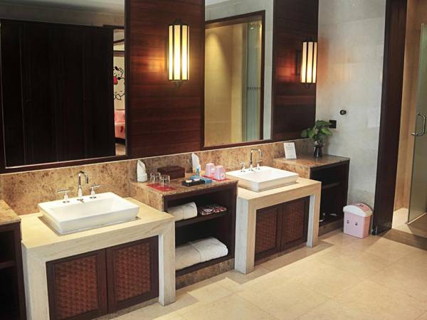 Yalong Bay Earthly Paradise Birds Nest Resort is a luxurious resort located in Yalong Bay Tropical Paradise Forest Park, offering spacious villas with free Wi-Fi and stunning sea or mountain views. The resort features an outdoor pool, a spa center, a children's playground, a sun terrace, and 3 on-site restaurants. It is conveniently located just a 10-minute drive from Yalong Bay and a 30-minute drive from Yalong Bay Railway Station, with Sanya Phenix International Airport only 50 minutes away. Each villa has a private entrance, wooden flooring, and a flat-screen satellite TV, as well as a private bathroom with soft bathrobes and shower facilities. Guests can enjoy the outdoor pool, spa center, and business facilities, and also take advantage of room service, concierge service, and airport shuttle service for an additional fee. The resort's restaurants offer a variety of cuisine, including Thai, Western, and authentic local dishes.